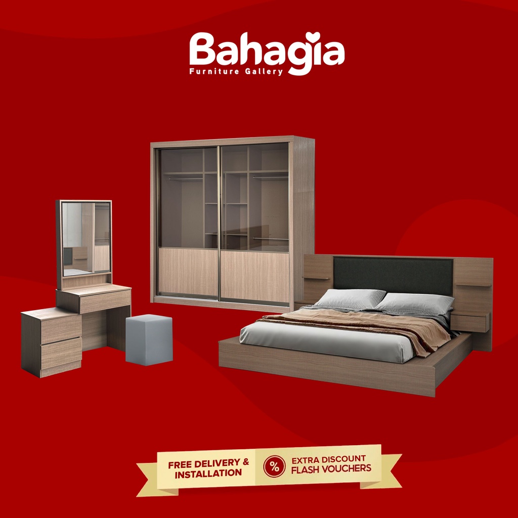 Bahagia Kairo Queen Bedroom Set Bedframe Wardrobe 3 5 X 6ft Dressing Table Stool Shopee Malaysia